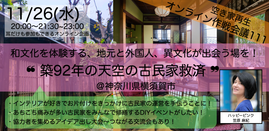 【オンライン作戦会議】vol.111 『和文化を体験する、地元と外国人、異文化が出会う場を!❝ 築92年の天空の古民家救済 ❞@神奈川県横須賀市』