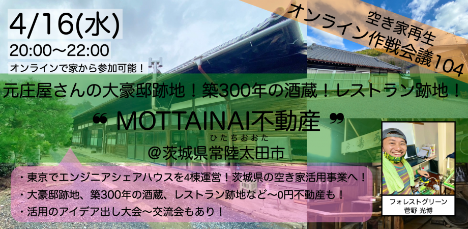 【オンライン作戦会議 vol.104】元庄屋さんの大豪邸跡地!築300年の酒蔵!レストラン跡地!❝ MOTTAINAI不動産 ❞@茨城県常陸太田市